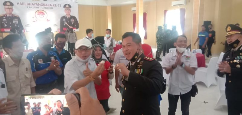 Ikut berpartisipasi dan memeriahkan Hari Ulang Tahun (HUT) Bhayangkara Ke-75, Pengurus Serikat Media Siber Indonesia (SMSI) Banyuasin mendatangi Aula Polres Banyuasin untuk memberikan Tumpeng Pempek dan diterima langsung oleh Kapolres Banyuasin AKBP Imam Tarmudi didampingi Waka Polres Banyuasin, Kompol Yenny Diarti serta para Kabag, Kasat dan Jajaran Polres Banyuasin, Kamis 1 Juli 2021 tadi.