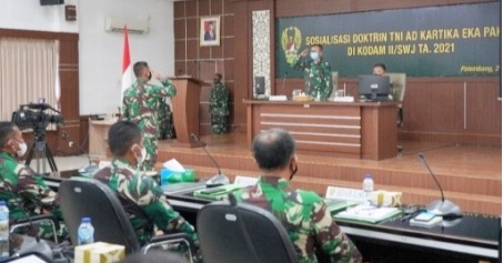 Sementara Kegiatan Sosialisasi Doktrin Kartika Eka Paksi (KEP) yang dilaksanakan secara tatap muka dan dalam jaringan (Daring) ini diikuti satuan jajaran Kodam II/Sriwijaya. Tim sosialisasi sekaligus sebagai nara sumber pada kegiatan tersebut dipimpin oleh Dirdok Kodiklat TNI AD Brigjen TNI Agustinus Purboyo. Turut hadir pada acara tersebut, Irdam II/Swj, Kapoksahli Pangdam II/Swj, Danrem 044/Gapo, Asrendam II/Swj, para Asisten Kasdam II/Swj dan Kabalakdam di lingkungan Makodam II/Swj.