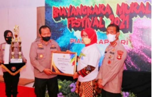 Lomba mural bertajuk Bhayangkara Mural Festival Piala Kapolri 2021 mengangkat tema Peran Generasi Muda untuk Berkreasi dalam Menyampaikan Informasi yang Positif pada Masa Pandemi Covid-19.ucapnya sabtu 30/10/2021.